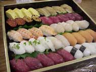 ←コスメを作る担当編集者T画伯。 →撮影は昼の1時からスタート。途中、休憩に食べるようにお寿司。書籍編集部の物撮りを私がやっている間に、皆さんお食事。う、うにが。。。確かに2個あったのに。悪魔が二人。。。担当編集者T画伯とK嬢ですね。まあ、えんがわが一個残ってたから、いいですけど。うまいな〜えんがわ。 |