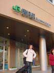←旅の記念写真の定番。駅の看板の前でNOVAうさぎのポーズをするK嬢。何かが違う。手の角度?腰のひねり?要練習です(笑)。 |