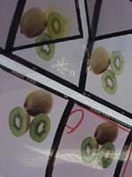 | ↑昨日の撮影の様子。8種類のフルーツを単品で撮影。バックペーパーを4色用意して、2種類ごとに取り替え。これがなかなか時間がかかりました。 | ↑フルーツとバックペーパーは別々にライティング。 | ↑かわいいデザート。せっかくなのでこのホームページ用にマビカでもパチリ。 | |