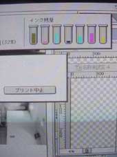 ←暗室作業が終わってサンプルをプリントしたらノズルが詰まっていて、とんでもない写真に。あわててノズルの掃除をしたら、一気にインクの残量が減ったような。。。ブラックとライト・マゼンダがピンチ!足りるのか? 。。。なんとか足りました、ホッ(笑)。 |