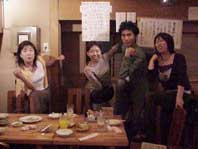 | ↑お疲れさまの記念撮影。左から田中いづみちゃん、岩本舞子ちゃん、担当編集者のH嬢。この後、ひたすら私は物撮り。 | ↑お昼過ぎから始めて9時頃まで撮影。スタジオを片付けたら10時。お腹ぺこぺこです。M嬢、K嬢、Nさん、H嬢と中華居酒屋で軽く打ち上げ。お疲れさまでした〜。 |