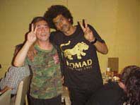 | ライヴ終了後、一度ホテルに戻って渋谷で撮影。。。は、中止になりました(笑)。やっぱりね、ライヴで疲れ果てているメンバーを連れ出すのは可哀相です。楽屋で黄色いバックドロップを背景に撮影していた時に、マネージャーのアンディーさんも立ち会っていて、この写真でいいか〜と思ったのかもしれません。 明日の朝に日本を離れるというメンバー、スタッフとホテルの近くのお蕎麦やさんで打ち上げ 。 →イブラヒムと記念写真を撮ってみました。店主近影です(笑)。 |