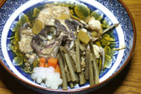 ←今年、調理師専門学校を卒業する甥っこが、お正月に作った鯛のお造りと、かぶと煮です。ライティングは、天井の蛍光灯でそのまま撮影。 |