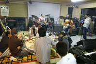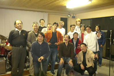 | ↓ Zaigotic BANDの新年会の記念写真。トータルではもっといっぱいの参加者だったのですが、先に帰ってしまった人はごめんなさい。私は夕方から深夜12時くらいまでの参加でしたが、新年会そのものは昼の1時から次の日の朝まで(;´Д`)・・・だったのか? | ↓スタジオの中に炬燵。素敵すぎる(笑)。私も久しぶりにドラム叩いてみますた(photo by バッタさん)。 | |