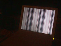 →ディスプレイに縞模様が出現した時の写真。マビカで撮影。こんな写真でも撮っておけば、修理担当の人と話す時に役にたつようです。話しがわりとスムーズに伝わった気がします。 |