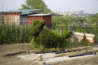 ←河川敷きの畠にて。サイクリングロードから撮影。巨大なネズミ、ウサギ?いずれにしても職人技です(笑)。カラス除けでしょうか?これだけデカイと、可愛くはないですね(笑)。