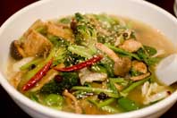 | ↓今日の一品ヽ(´▽`)/。一片雲の「とりソバ」。私がイメージしていた塩味とは違い、ちょっと甘辛なスープに野菜もたっぷり。あ〜それにしても「自家製煮豚チャーシューメン」食べてみたすハァハァハァ(;゚∀゚)。 |