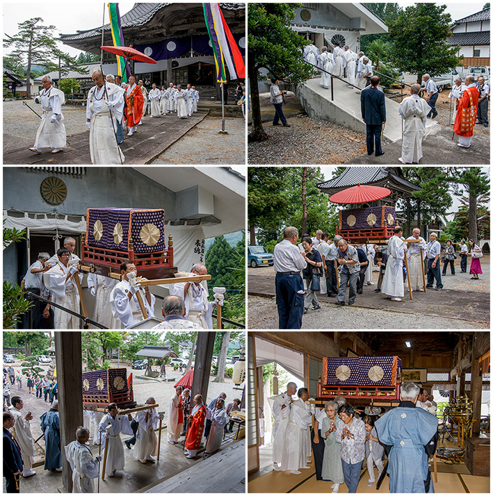 ↑↓→風入れ大法要。読経、雅楽があり、厨子から絵解きされる第九軸が出される。 |