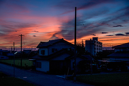 | 5時前、部屋をトントンとノックする音で目を覚ます。何かと思えば、母親が朝焼けが凄いと知らせるために起こしに来たのだった。とりあえず窓を開けて、何枚か写真を撮る。 | ||