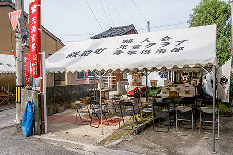 ↓天神祭りが斎行される谷内天満宮。→この社に御神体を遷座して町内をまわる。 |