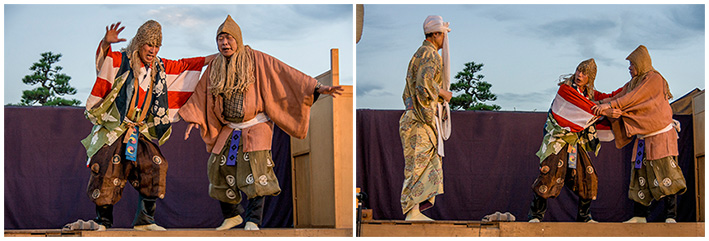 ↑狂言「水掛聟」。↓→仕舞「網ノ段」と「笠ノ段」。 |